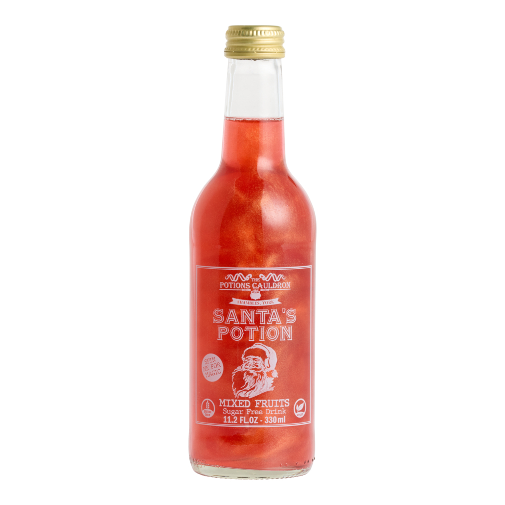 FRESH 11.2oz Potions Cauldron Santa’s Potion Mixed Fruits Christmas soda – VERY RARE!! Imported from the UK, this magical sugar free soda was created by Potions Cauldron and is the craziest soda we’ve seen since Orbitz many years ago!! Pick up the bottle and give it a spin, a couple of shakes and the liquid has what appears to be gold glitter as it floats in the bottle!! The picture does not do the product justice!! A must have for Christmas or simply collecting.