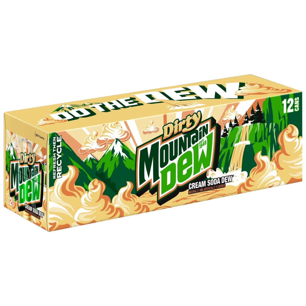 BRAND NEW!! FRESH 12 pack Dirty Mountain Dew soda!! Mountain Dew has always led where flavor goes next, and dirty soda is exactly that moment. Dirty Mountain Dew took their iconic citrus flavor and made it bold and refreshing in a whole new way – a bold, creamy ready-to-drink experience that’s exactly what Dew fans have been waiting for.
