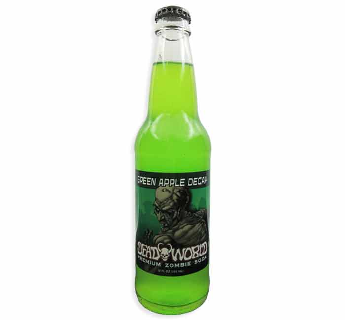 FRESH 12oz glass bottles DeadWorld Zombie Green Apple soda pop with Sugar!! Great for Halloween!